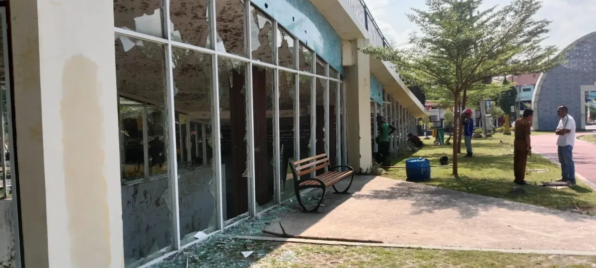CIREBON, (divipromedia.com) – Kondisi Taman Pataraksa Kabupaten Cirebon mengalami kerusakan cukup parah pasca aksi unjuk rasa yang berujung ricuh pada Sabtu (30/8/2025).